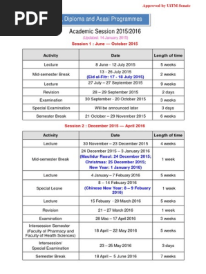 Academic Sessions 2014 2015 Uitm Pdf Academic Term Academia